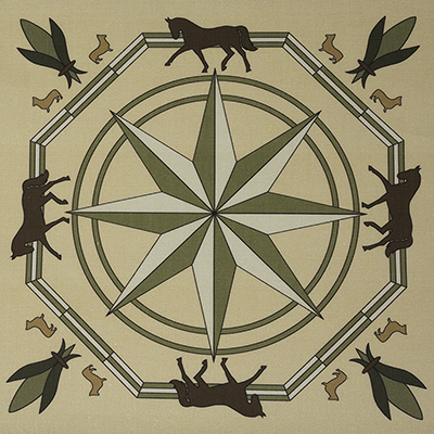 Cheval is a dreamy whimsical pattern with a horse farm inspiration printed on 100% Irish Linen.
